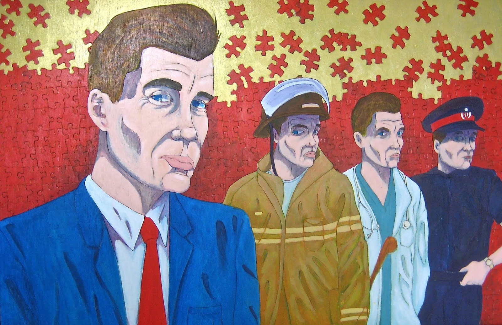 young man seeking identity through work; the warrior who girds himself with the armour of his profession |